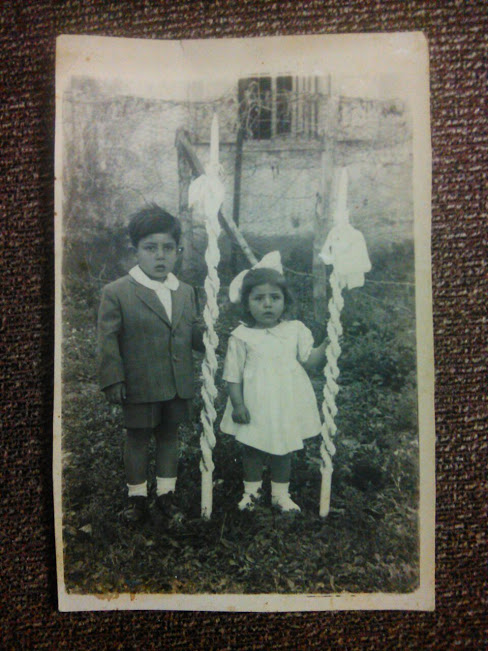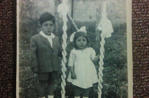 Minha irmã com três e eu com cinco anos.